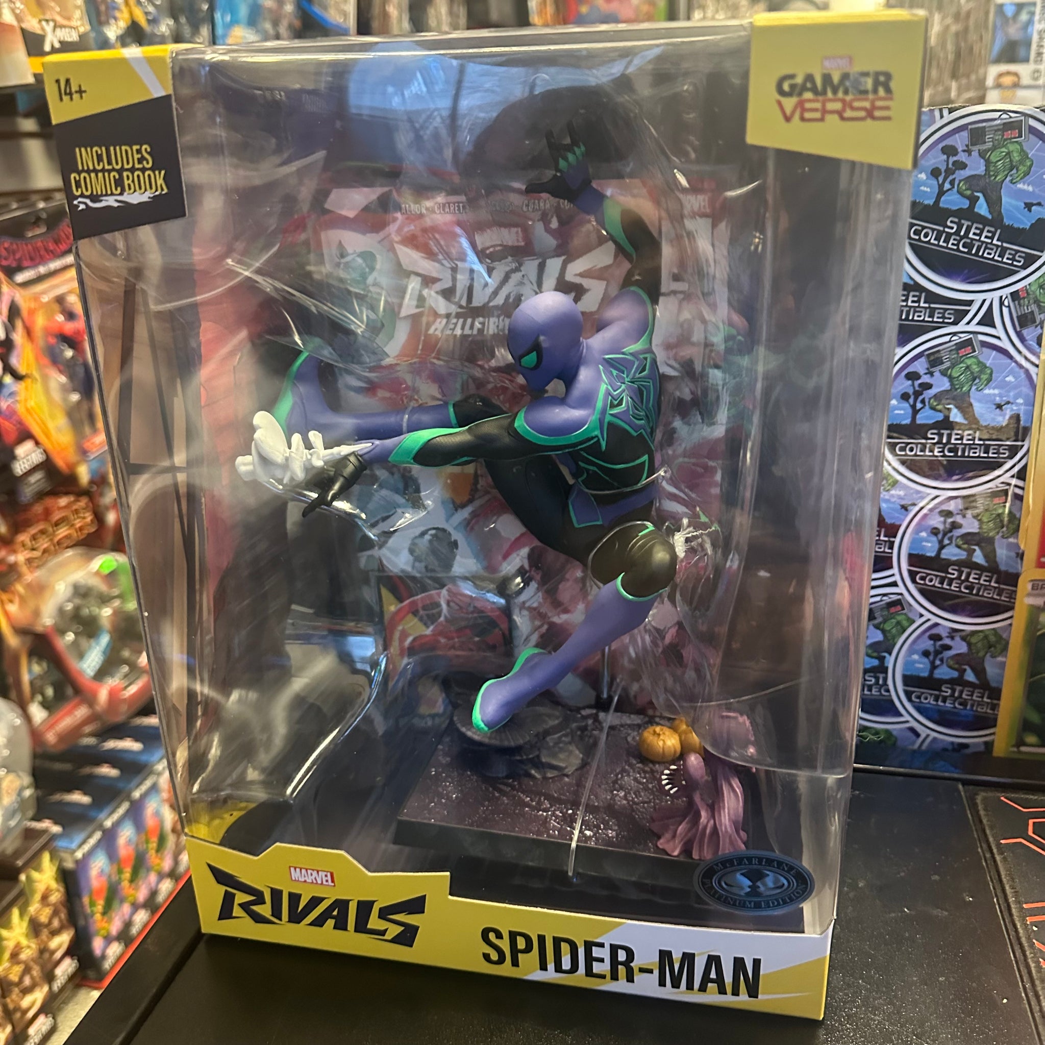 McFarlane Toys- “Marvel Rivals” Gamerverse Spider-Man (Platinum Edition Chase) Statue w/ Comic Book (New)