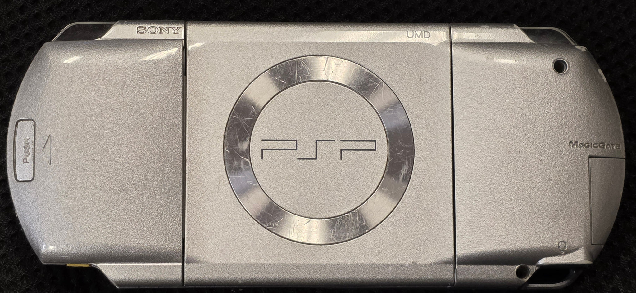 COMES WITH CHARGER & 1GB MEMORY STICK. CAN PLAY AMERICAN AND JAPANESE GAMES, BUT NOT AMERICAN MOVIES.